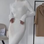 Dieses weiße Strickkleid überzeugt mit minimalistischem Chic und modernem Schnitt. Der feine Rippstrick, lange Ärmel, ein hoher Rollkragen und der seitliche Schlitz sorgen für eine feminine, figurbetonte Silhouette – perfekt für elegante Auftritte im Alltag, Büro oder bei besonderen Anlässen.